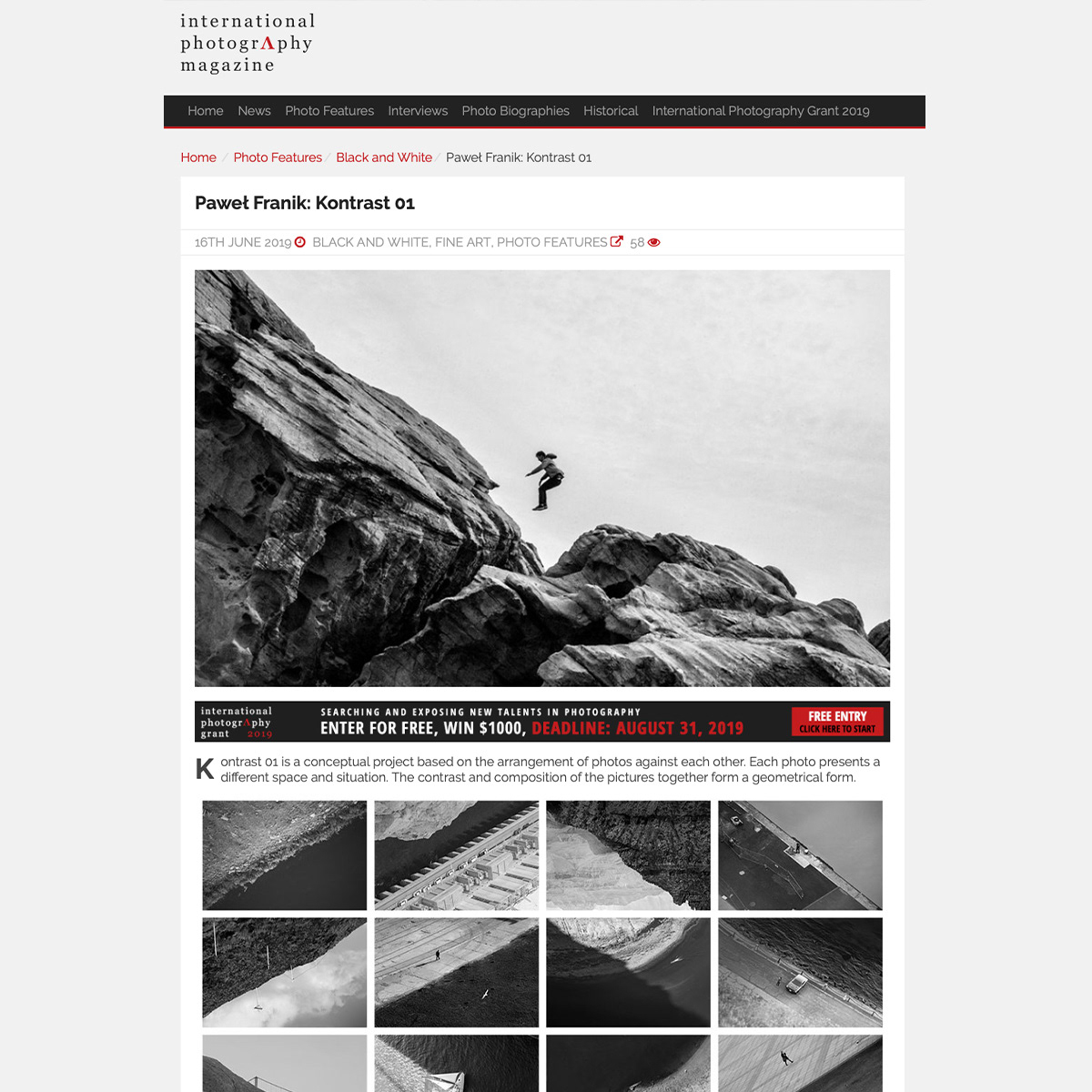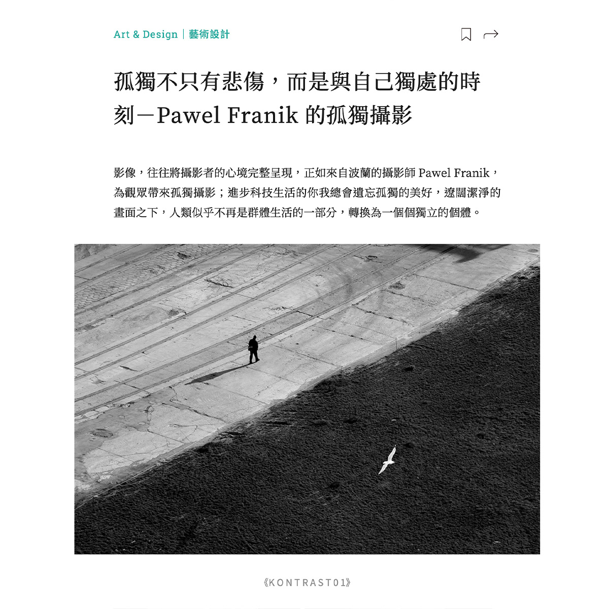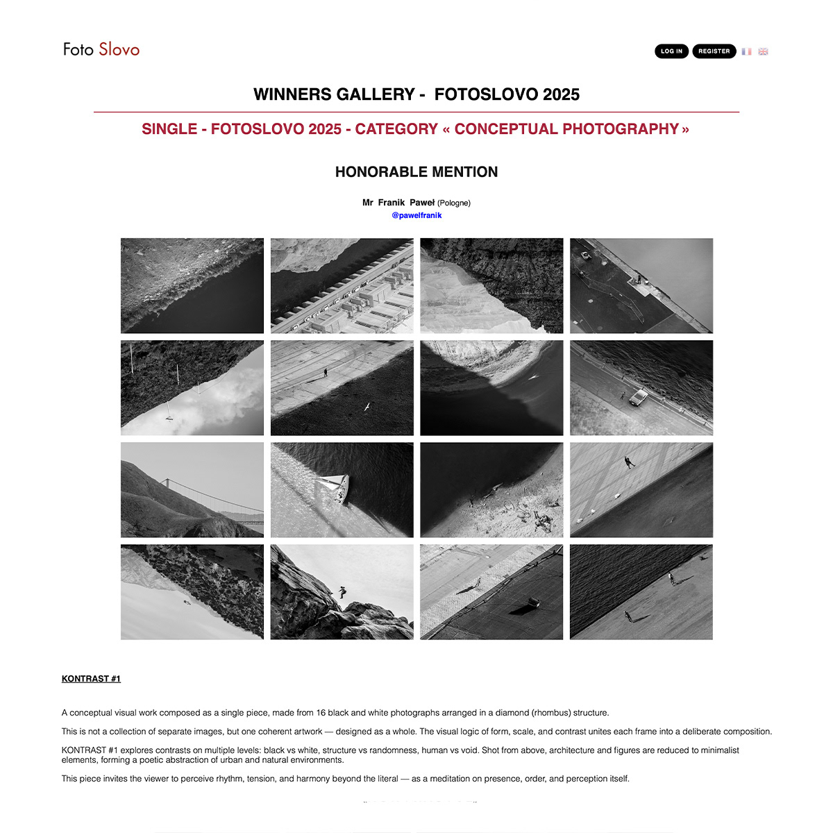 Kontrast 01 / 02 is a conceptual photography project by Paweł Franik, centered on relationships between images. Individual photographs do not operate as standalone narratives; meaning emerges through their juxtaposition. The work explores contrasts between light and shadow, nature and architecture, and the human scale within expansive spaces.