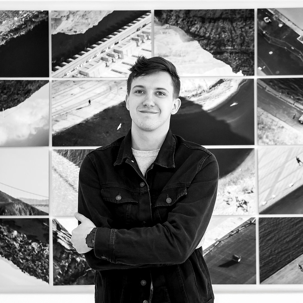The black-and-white aesthetic functions as a tool of reduction, directing attention toward structure, geometry, and visual tension. Fragmented frames form modular compositions that subtly disrupt orientation and encourage active perception. The project examines the threshold between documentation and abstraction, and considers how space shapes human presence and visual experience.